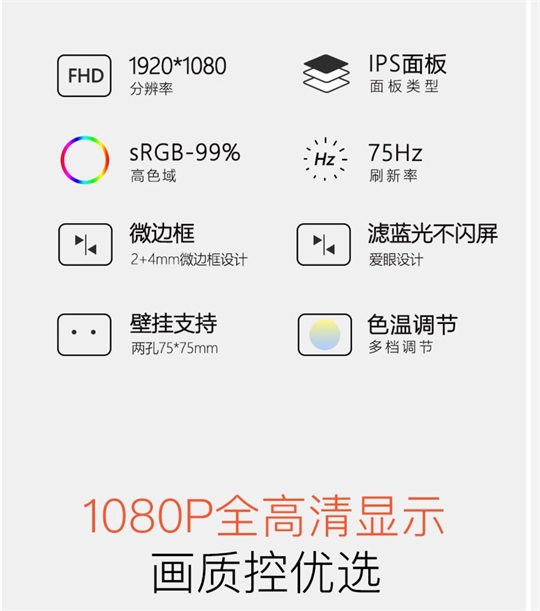 微邊框 辦公低藍(lán)光不閃屏可壁掛 電腦屏幕 FD2458w