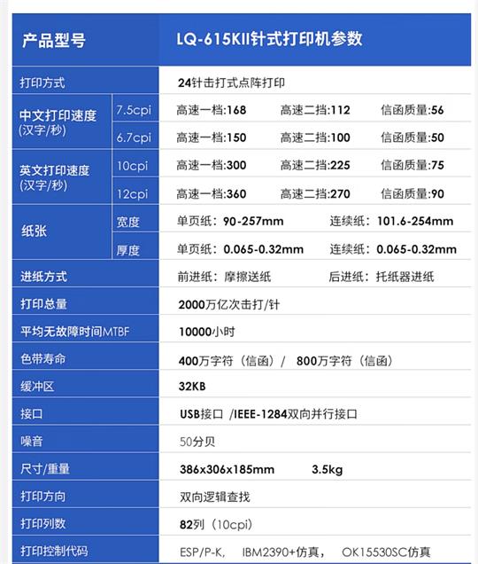 愛普生(EPSON) 發(fā)票打印機(jī) 1+3聯(lián)82列針式打印機(jī) LQ-615KII