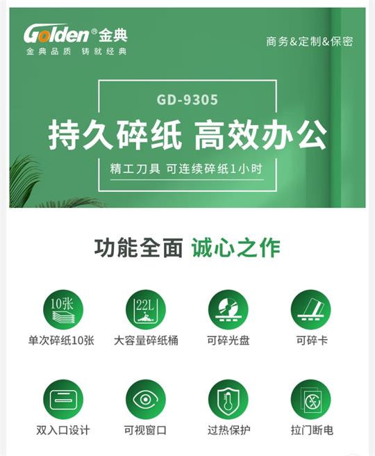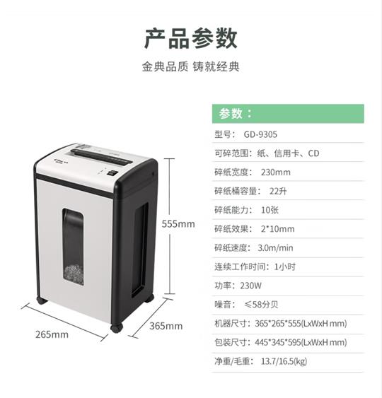 金典/GOLDEN GD-9305 碎紙機 單次10張/60分鐘高保密大容量