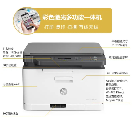 惠普/HP 178nw A4 彩色打印機(jī) A4打印復(fù)印掃描一體機(jī)(有線無線)