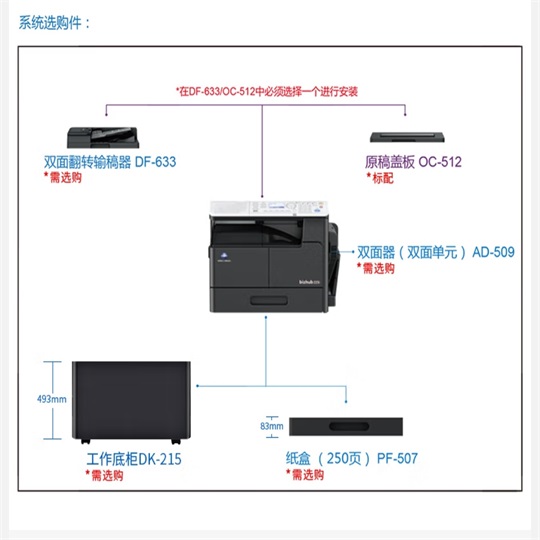 柯尼卡美能達/KONICAMINOLTA 215i A3 黑白打印機 復印機(含輸稿器 工作臺 )