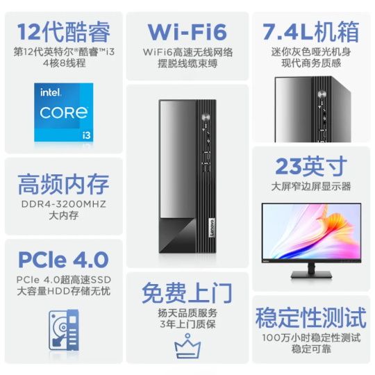 聯(lián)想/LENOVO 4000Q 臺(tái)式計(jì)算機(jī) i3-12100 8+256G 23.8英寸顯示器
